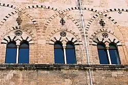 Der Innenhof hat im Erdgeschoss einen Bogengang und im Obergeschoss eine Loggia. An einer Wand des Arkadenhofs war ursprünglich das Fresko Triumph des Todes angebracht, das jetzt in der Galleria Regionale della Sicilia im Palazzo Abatellis ausgestellt ist.