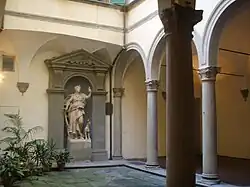 Die bemerkenswerte Marmorstatue der Jägerin Diana mit dem Hund, wurde um 1690 von Giovanni Baratta geschaffen. Sie ist das wertvollste Element des Innenhofes, das sich in einem nischenartigen Tympanon befindet, und vom Portal als perspektivischer Schwerpunkt dient.