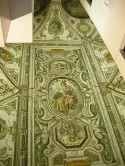 Im Erdgeschoss befindet sich auch ein mit Fresken versehener Raum mit Grotesken und Szenen aus dem späten 16. Jahrhundert, die sich auf den Kreis von Michelangelo Cinganelli beziehen, und ein Zimmer aus dem 19. Jahrhundert als Piano nobile.