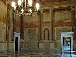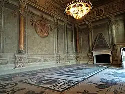 Nachfolgende Beschreibung beschränkt sich im Wesentlichen auf den östlichen und nördlichen Flügel des Piano nobile mit den bedeutendsten Räumlichkeiten.[7]