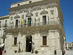Der Stadtpalast zeigt typische Merkmale des sizilianischen Barocks wie den Eisenbalkon. Die Fassade ist auch mit merkwürdigen Verzierungen von Muscheln und Masken geschmückt. Auftraggeber des Neubaus war der örtliche Senat. In den Nischen sollten Statuen der Könige von Spanien stehen, doch der Bildhauer Gregorio Tedeschi stellte nur das Wappen der spanischen Monarchie über dem Portal fertig. Der dritte Stock wurde im 19. Jahrhundert ergänzt.