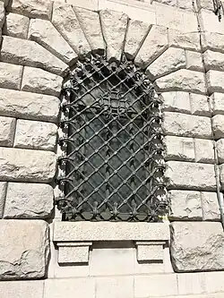 Bei den Fundamenten wurde daher auf eine Bodenverdichtung zurückgegriffen, für die sechs Meter lange Tannenstämme mit 26 Zentimeter Durchmesser in das Gelände eingetrieben wurden, je einer auf einem Quadratmeter Oberfläche, verbunden durch einen Betonaufguss. Darauf wurde eine feste Plattform aus 40 Zentimeter dickem, armierten Beton gegossen, die mit den Mauern verbunden wurde.