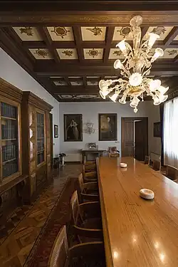 Im Direktionsgeschoss zeigen das Büro und der Beratungssaal Elemente aus der Zeit des Baus des Gebäudes (1928) und von besonderem architektonischen Wert. Die Decken beider Räume bestehen aus Holzkassetten, die mit Motiven und Verzierungen im Art-Déco-Stil bemalt sind. Die Bodenbeläge zeigen ein diagonal angeordnetes, geometrisches Schachbrettmuster und beinhalten Holzintarsien in kostbarer Ausführung. Die Lampenschirme bestehen aus geplatztem Muranoglas und wurden vermutlich in der ersten Hälfte des 20. Jahrhunderts hergestellt, zeigen aber eine Zeichnung im Stil des 18. Jahrhunderts, wie der größte Teil dieser künstlerischen Artefakte.