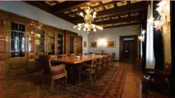 Im Inneren war die Verbindung des alten mit dem neuen Gebäude nicht so einfach, sowohl, was die Verteilung der Räumlichkeiten angeht, als auch, was ihre Verbindungen angeht. Bei der inneren Aufteilung wurde somit besonders auf die Harmonie durch schöne künstlerische Linien und edle Materialien geachtet.