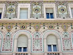 Nach dem Ersten Weltkrieg und der erfolgten Besetzung Triests durch Italien wurde die Fassade italianisiert. Die originalen Mosaiken, die von Giuseppe Straka entworfen worden waren und Elemente österreichischer Provenienz zeigten, wurden durch Wappen des Hauses Savoyen ersetzt. Ebenso wurde die stilisierte österreichische Kaiserkrone oberhalb der Loggia, die von Statuen auf einem Kissen getragen wurde entfernt, jetzt tragen die Statuen nur ein leeres Kissen.
