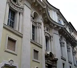 Der ursprünglich als Architekt beauftragte Gian Lorenzo Bernini wurde 1646 durch Francesco Borromini abgelöst, da dessen Stil von seinem Mäzen Innozenz X. bevorzugt wurde. Borrominis Gestaltung der Fassade ist durch mächtige Pilaster gegliedert, zwischen denen die Fenster des ersten Stocks nach innen versetzt sind, während sich das Zentraljoch nach vorne wölbt. Eine Leiste trennt das Erdgeschoss vom ersten Stock, das Gesims des Zentraljochs schwingt jedoch wieder nach innen. Diese künstlerisch-architektonisch erzeugte Unruhe gilt als beispielhafte Leistung des Barock in Rom.