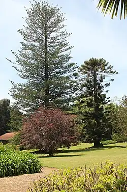 Der besondere Reiz des Gartens liegt in der Kombination aus von Mitteleuropa vertrauten Bäumen, etwa Buche und Stieleiche, mit subtropischen Gehölzen aus aller Welt. Gleich hinter dem Kassenhäuschen am Eingang macht eine Kamelienallee auf sich aufmerksam, die ersten dieser in Ostasien beheimateten Baumsträucher wurden in dem Garten bereits im 19. Jahrhundert gepflanzt. Zu einem Wahrzeichen von Palheiro Gardens avancierten zwei Koniferen aus der Gattung der Araukarien, sie stehen westlich der kleinen Barockkapelle St. Johannes. Mit einer Höhe von 42 m und einem Stammumfang von 6 m gehört die Zimmertanne (Araucaria heterophylla) zu den mächtigsten Bäumen Madeiras. Monumentale Größe erreicht auch ein 30 m hoher amerikanischer Tulpenbaum (Liriodendron tulipifera).