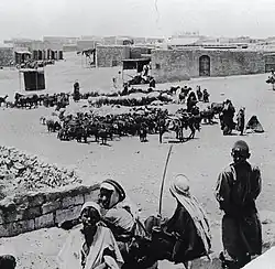 Wie traditionell die Kufiya bei den unterschiedlichen Bevölkerungsgruppen Palästinas war, wird in der Literatur unterschiedlich dargestellt. Unumstritten ist, dass die Kufiya zur osmanischen Zeit die traditionelle Kopfbedeckung der Beduinen war, wohingegen städtische Eliten ab dem frühen 19. Jahrhundert den von den Osmanen eingeführten steifen Istanbuler Tarbusch (→ Fes) trugen. Uneinigkeit herrscht bei der größten Bevölkerungsgruppe der Fellachen: In der jüngeren Forschung findet sich sowohl die Ansicht, dass die Kufiya auch bei der Landbevölkerung die traditionelle Kopfbedeckung war,[8] als auch die, Dörfler hätten üblicherweise den weicheren Maghrebischen Tarbusch getragen, der bei erwachsenen Männern in der Regel von einem Laffeh genannten Turban umwunden war, und die Kufiya habe sich dort erst In der Mandatszeit (s. u.) durchgesetzt.[9] In zeitgenössischer ethnologischer Literatur aus der späten osmanischen Zeit finden sich außerdem mehrere dazwischen liegende Positionen. Der Missionar Charles T. Wilson beschrieb dies als eine regionale Frage: Grundsätzlich hätten Bauern den Tarbusch mit Laffeh getragen; in Gegenden mit häufigem Kontakt zu Beduinen hingegen sei die Kufiya üblich gewesen.[10] Ähnlich wurden nach Gustaf Dalman[11] von der ländlichen Bevölkerung insgesamt beide Kopfbedeckungen getragen; welches Modell überwog, hing von der Region ab.[12] Nach Friedrich Ulmer schließlich trug die Landbevölkerung in der Regel den Maghrebischen (und auch den Ägyptischen) Tarbusch, um diesen sei als Turban aber gerade die Kufiya gewunden worden.[13]