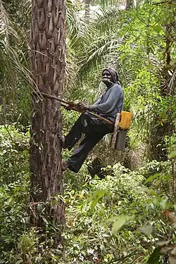 In weiten Teilen Westafrikas gehört Palmwein zu den typischen alkoholischen Getränken. Er wird aus der Ölpalme (Elaeis guineensis) hergestellt, aber auch aus der Äthiopischen Palmyrapalme (Borassus aethiopum) und Borassus akeassii.