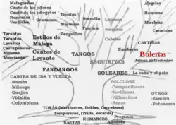 - ↑ Vergleiche hierzu die Übersicht zu frühen Klassifikationssystemen, in: Domingo Manfredi Cano: Geografía del cante jondo. Colleción El Grifón, Madrid 1955, ISBN 84-7786-958-8, S. 87 ff. (spanisch).