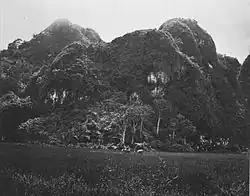 Kalksteinfelsen und Reisfelder bei Pangkajene (Ende 19. Jh.)