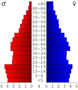 29,4 Prozent der Bevölkerung war unter 18 Jahre alt, 10,4 Prozent zwischen 18 und 24, 27,4 Prozent zwischen 25 und 44, 20,8 Prozent zwischen 45 und 64 Jahre alt und 12,1 Prozent waren 65 Jahre oder älter. Das Durchschnittsalter betrug 33 Jahre. Auf 100 weibliche kamen statistisch 91,8 männliche Personen und auf 100 Frauen im Alter von 18 Jahren oder darüber kamen 86,5 Männer.