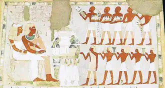 - ↑ Elisabeth Staehelin: Untersuchungen zur ägyptischen Tracht im Alten Reich. Hessling, Berlin 1966, S. 36.