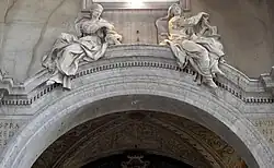 - Engel, zwei Stuckarbeiten, auf dem Tympanon des Hochaltars der Kirche Gesù e Maria al Corso, Rom (1686)