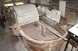 Bei letzteren imitierte ein spezieller Rundsiebzylinder die beim handgeschöpften Bögen durch die Schöpfform verursachte Rippung in der Pappe. Während die maschinelle Aktendeckelproduktion bis zur Betriebsstilllegung im Jahr 1975 lief, wurde die Packpapierherstellung bald nach 1955 eingestellt.[10]