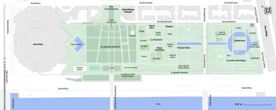 Der Parc de Bercy ist eigentlich eine Zusammenfassung dreier Gärten von zusammen 14 Hektar im Quartier Bercy des 12. Arrondissement von Paris. Er liegt zwischen der Accor Arena im Norden und dem Erlebniszentrum Bercy Village am ehemaligen Lagerhaus Bercy im Süden.