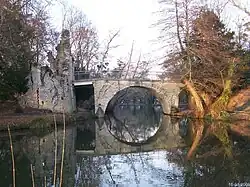 - Der Pont du donjon am südöstlichen Eingang zum Park ist eine Brücke, kombiniert mit einer romantischen Ruinenarchitektur, die das finale Verfallsstadium einer Burg vorspiegelt. Außen zwar mit Kalkstein gestaltet ist der Kern des Bauwerks Eisenbeton.[8]