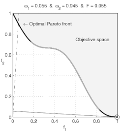 Es ist zu beachten, dass die Pareto-Menge im Allgemeinen nicht vollständig durch die Variation von Gewichtungsfaktoren in der skalarisierten Zielfunktion bestimmt werden kann (vergleiche Animation).