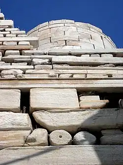 Zu den bedeutenden antiken Bauten mit Parischem Marmor zählen der Apollontempel in Delphi sowie die Giebelskulpturen des Aphaiatempels auf Ägina.