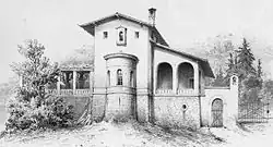 - ↑ Das Haus in seiner bestehenden Form ist erstmals auf einem Gedenkblatt 1877 dargestellt worden. Es gibt aber keine Hinweise darauf, dass es jemals einen anderen Turmabschluss besessen hat. Katalog Schloss Glienicke, 1987, S. 163.