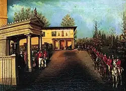Im November 1822 starb Hardenberg unerwartet in Genua. Sein Sohn Christian Graf von Hardenberg-Reventlow plante Glienicke zu verkaufen. Offenbar wollte er das Gut aber an einen würdigen Käufer veräußern, denn die Verkaufsverhandlungen zogen sich über ein Jahr bis März 1824 hin. Der Käufer wurde Prinz Carl von Preußen. Wie genau es zustande kam, dass der drittgeborene Sohn des Königs, der noch nicht einmal verheiratet war, als erster Sohn des Königs einen eigenen Grundbesitz erhielt, ist bis heute nicht geklärt.[9] Er muss aber für alle Beteiligten als geeigneter Käufer für das fürstliche Anwesen angesehen worden sein, dessen Verkauf nun mittlerweile 50.000 Taler erzielte. Carl erwarb von Hardenbergs Erben ein modernes, wirtschaftlich voll funktionsfähiges Anwesen, das auch weitgehend modern möbliert und eingerichtet war und durch seine Gartenanlagen hervorstach.