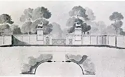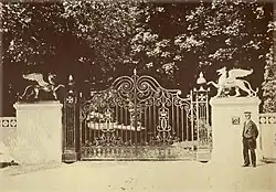 - ↑ Bernhard: Die Bautätigkeit…, in: Ausstellungskatalog Schloß Glienicke 1987, S. 87, dort auch Sievers-Foto von um 1934 mit Resten des Staketenzauns.