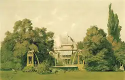 - ↑ Harry Nehls: Zur Provenienz und Lokalisierung des Festspielzeltes im Gartenhof des Schlosses zu Klein-Glienicke. In: Mitteilungen des Vereins für die Geschichte Berlins. Nr. 4, 1986, S. 433–437.