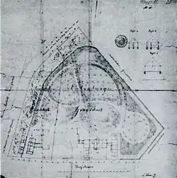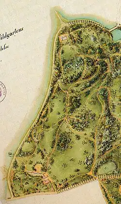 1. Parkplan (Original verschollen) des Stammgrundstücks (F. Schojan nach P. J. Lenné, 1824–1825) -