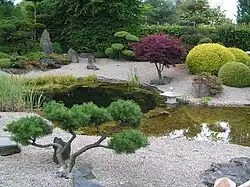 Eine modellierte Berglandschaft mit Wasserlauf und Kiesbett bildet das Zentrum des Japanischen Gartens. Die geschnittenen Kiefern, genannt Big-Bonsais, sind über fünfzig Jahre alt und werden seit zwanzig Jahren bearbeitet und geschnitten. Ebenfalls sind ein Bambushain und alte Rhododendren zu finden.