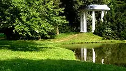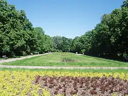 - Der Fürst-Poniatowski-Park liegt zwischen den Straßen Parkowa, Mickiewicza, Włókniarzy und Żeromskiego und hat eine Fläche von etwa 41,2 Hektar. Angelegt wurde der Park 1904 bis 1910 als Ogrodu przy ul. Pańskiej (Garten bei der Pańskiejstraße, heute die Żeromskiego). Im Juli 1912 erließ der Stadtpräsident Łódźs eine Verfügung, die den Zutritt zum Park nur noch Offizieren, Beamten oder Personen mit einer Sondererlaubnis des Stadtpräsidenten erlaubt.[1] 1917 erhielt der Park seinen heutigen Namen. In den 1920er Jahren war die Villa im Park Sitz des Stadtpräsidenten. 1938 wurde ein Denkmal für Stanisław Moniuszko im Park errichtet, allerdings wurde dieses bereits ein Jahr später beim Einmarsch der Wehrmacht zerstört. Nach Ende des Weltkrieges wurden zwei Soldatenfriedhöfe der Roten Armee und der polnischen Kämpfer im Park angelegt. 1955 wurde ein Konzertplatz angelegt.
