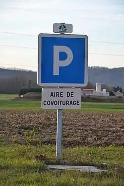 Beschilderung Mitfahrerparkplatz in Frankreich und P+M-Anlage an einer Bundesstraße in Deutschland