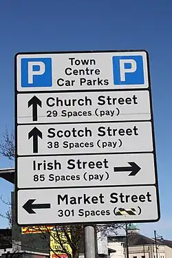 Parkleitsysteme ohne variable Anzeigen verweisen nur auf die Lage[2], in manchen Fällen auch auf die Kapazität von Parkmöglichkeiten. Manche Städte weisen auch eine Route aus, die an mehreren Parkmöglichkeiten vorbeiführt. Solche manchmal Parkroute oder Parkring[3] genannten Wegweisungen sind einfacher als dynamische Parkleitsysteme.[4]