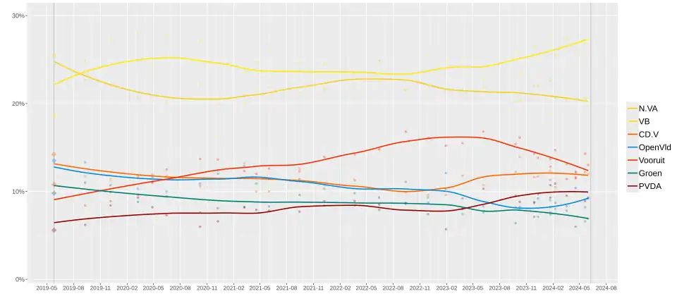 - ↑ Belga: Kogel is door de kerk: op zondag 9 juni 2024 trekken we naar de stembus. In: vrtnws.be. 17. Mai 2023, abgerufen am 26. Mai 2023 (niederländisch).