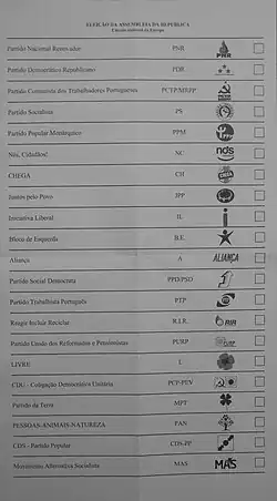 - ↑ Tilo Wagner: Vor den Parlamentswahlen - Portugals konservatives Lager zersplittert. In: Europa Heute. Deutschlandfunk, 2. Oktober 2019, abgerufen am 5. Oktober 2019.