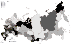 | Jüdische Autonome Oblast | 52,0 % | 48,1 % | 19,8 % | 10,5 % | 15,7 % | 1,9 % | 0,9 % | 0,5 % | 2,5 % |