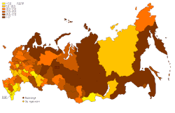 | Oblast Sachalin | 48,7 % | 41,9 % | 23,4 % | 11,8 % | 16,0 % | 3,4 % | 1,2 % | 0,7 % | 1,6 % |