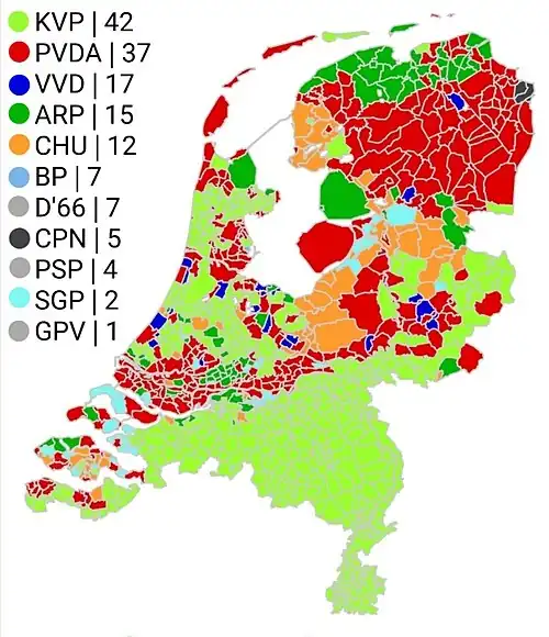 | Katholieke Volkspartij (KVP) | 1.822.904 | 26,5 | 42 | –8 | |
