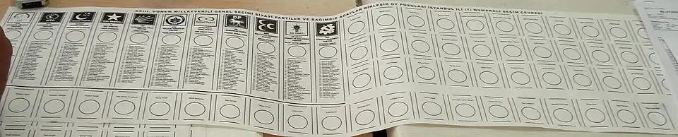 - Die Demokratische Linkspartei (DSP), die prokurdische Demokratik Toplum Partisi und die Sozialdemokratische Volkspartei nahmen nicht an der Wahl teil.