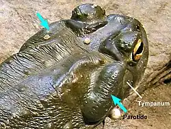 Als Parotiden – auch Parotoiden, Parotoiddrüsen oder Ohrdrüsen – bezeichnet man paarige, meistens wulstförmige, hinter den Augen mancher Amphibien hervortretende Hautdrüsenkomplexe. Bei Kröten, aber auch bei einigen Laubfröschen sowie Schwanzlurchen (beispielsweise beim Alpen- und beim Feuersalamander) sind diese besonders deutlich sichtbar ausgeprägt. Sie sind durch starke Vermehrung und Vergrößerung von Körner- bzw. Giftdrüsen entstanden, die auch die übrige Haut bedecken. Hier werden verschiedene Giftstoffe (Alkaloide) produziert, die sowohl der Abwehr von Fressfeinden als auch dem Schutz gegen Hautparasiten (Ektoparasiten) dienen (vgl. beispielsweise: Aga-Kröte). Auf Druck bzw. Reizung wird dabei ein milchig-weißes Sekret abgesondert.