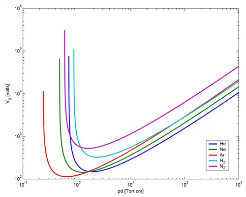- ↑ a b F. Paschen, “Ueber die zum Funkenübergang in Luft, Wasserstoff und Kohlensäure bei verschiedenen Drucken erforderliche Potentialdifferenz,” Annalen der Physik, vol. 273, no. 5, pp. 69 – 96, 1889. doi:10.1002/andp.18892730505