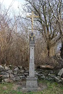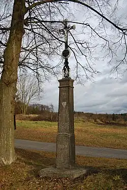 - Wegekreuz am südwestlichen Ortsausgang am Abzweig des Weges nach Nuzov, errichtet 1898