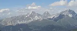 Piz Mitgel (links) und Tinzenhorn (rechts). Rechts davon der Pass digls Orgels. -