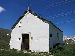 Ab 1935 entstanden auf der Schweizer Passseite Befestigungen im Rahmen der Sperrstelle San Giacomo (Artilleriewerk Grandinagia), die insbesondere während des Zweiten Weltkrieges weiter ausgebaut wurden. Zuletzt umfasste die Sperrstelle San Giacomo 30 Einzelobjekte, für deren Versorgung das Militär eine Seilbahn betrieb. Die Befestigungen wurden nach ihrer Aufgabe in den 1990er Jahren als Sperrstelle von nationaler Bedeutung klassifiziert.[8]