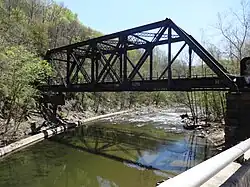 Patterson Viaduct | Grist Mill Trail | Ilchester | 2006 | Frühere Eisenbahnbrücke, eröffnet im Jahre 1829, zerstört im Jahre 1868 und wiederaufgebaut im Jahre 1869; neue Fußgängerbrücke auf den Pfeilern der früheren Eisenbahnbrücke gebaut |