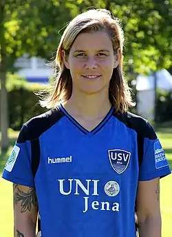 - ↑ Frauenfußball: USV Jena verliert Landeka und holt Hanebeck ( vom 29. Juni 2016 im Internet Archive)