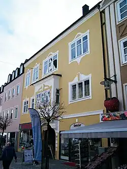 Im Erdgeschoss befindet sich ein nicht ursprünglicher Ladeneinbau mit großflächigen Schaufenstern.[2]