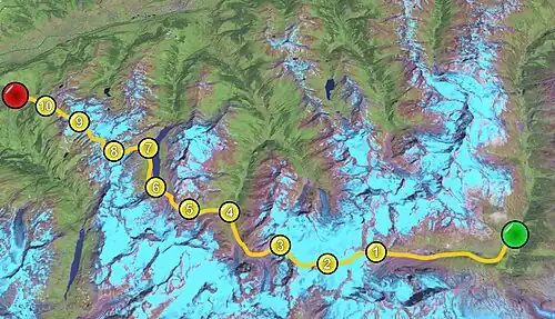 Wegen wechselnder Schneeverhältnisse gibt es immer wieder Änderungen in der genauen Routenführung. Am PDG 2018 müssen diejenigen Athleten, die in Arolla starten, nicht den Col de Riedmatten, sondern den 650 Meter südlicher gelegenen Col de Tsena Réfien (2951 m) ansteuern.[10]