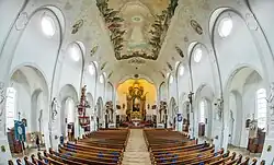 Die Kirchenmalereien Kecks enthalten unter anderem auch sein Selbstbildnis, ebenso ein Porträt von Josef Spieler und eines des Restaurators Ludwig Stoller und dessen Neffen. Unter sein Selbstbildnis schrieb er einen ausgiebigen Text, der mit den Sätzen endet: „Gemalt sind die Bilder mit ›Divagin‹ aus der Farbenfabrik Divag in Berlin./ Für meine Arbeit habe ich DM 51.000 zu bekommen.“[10] Spielers Porträt musste er übermalen, da dessen Ehefrau nicht davon angetan war, ihren Gatten an der Kirchendecke verewigt zu sehen. Er tat dies allerdings mit wasserlöslichen Farben, die später wieder entfernt waren. Auch das Spieler-Porträt ist mit einem langen Text versehen.[11]