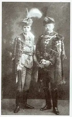 Paul Esterházy mit seinem Vater in ungarischer Magnatentracht, 1916