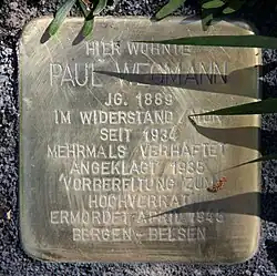- Im Garten des Volkshauses Bohnsdorf in Berlin-Bohnsdorf erinnert ein Gedenkstein u. a. an Paul Wegmann.